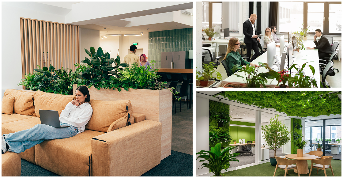 - Integración de Elementos Naturales: Incorporar plantas y espacios verdes que mejoren la calidad del aire y el bienestar de los empleados.